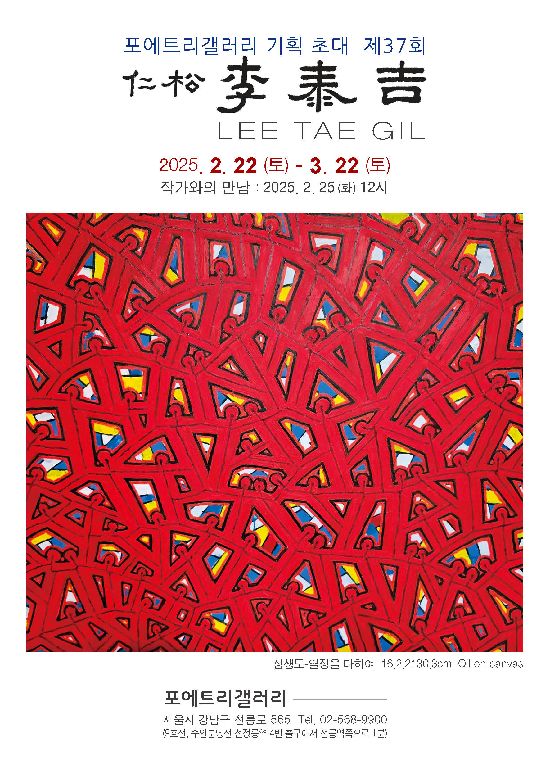 포에트리갤러리 제 37회 이태길 LEE TAE GIL 기획 초대전 2025.2.22-3.22 서울시 강남구 선릉로 565 T.02-568-9900