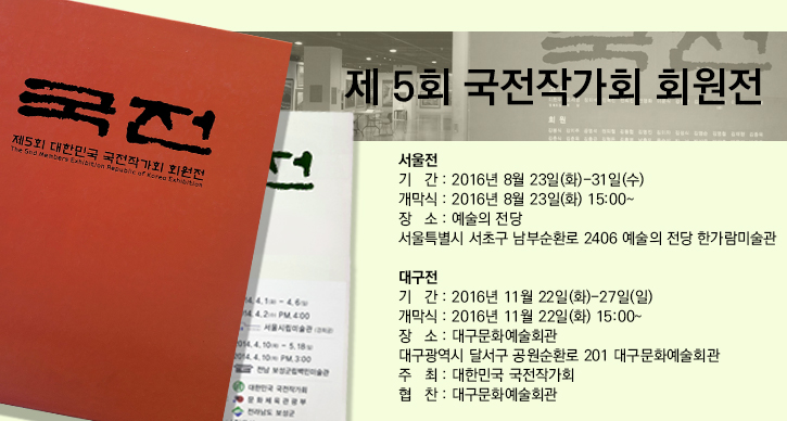 기 간 2017년 5월 17일(수)-23일(화) 개막식 2017년 5월 17일(수) 15:00~ 장 소 인사아트플라자 갤러리 3F 서울시 종로구 인사동길 34-1 주 최 대한민국 국전작가회 작가명단 이한우(명예회장), 오세영(회장), 장리석, 민복진, 전뢰진, 전영화, 이운식, 강정완, 이경순, 박행보, 조규일, 이필언, 강봉식, 강지주, 공영석, 권...
